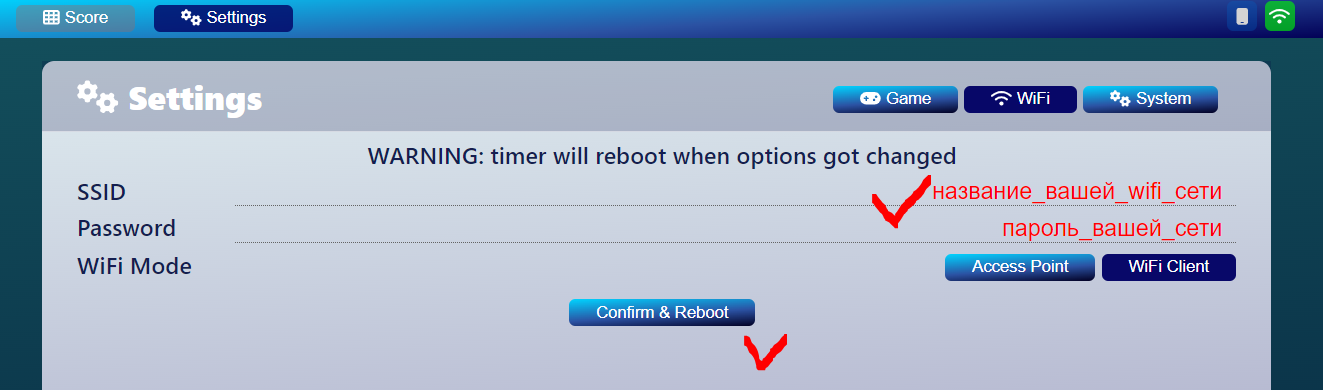 Теперь надо подключить к табло к вашей WiFi сети.