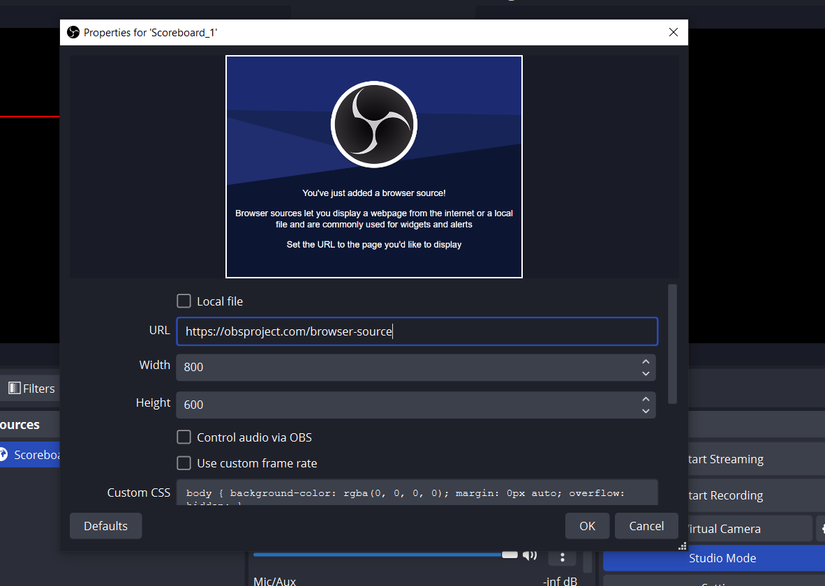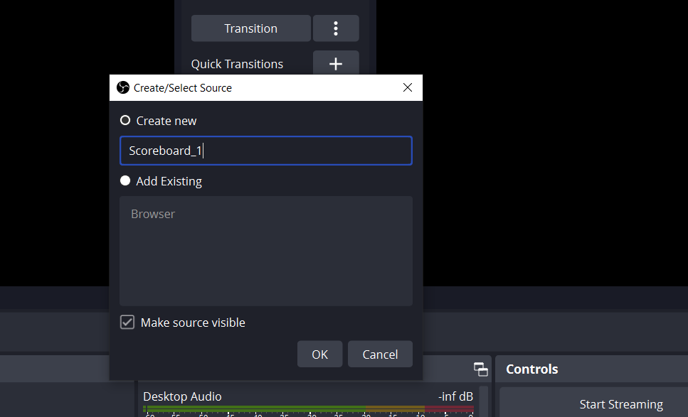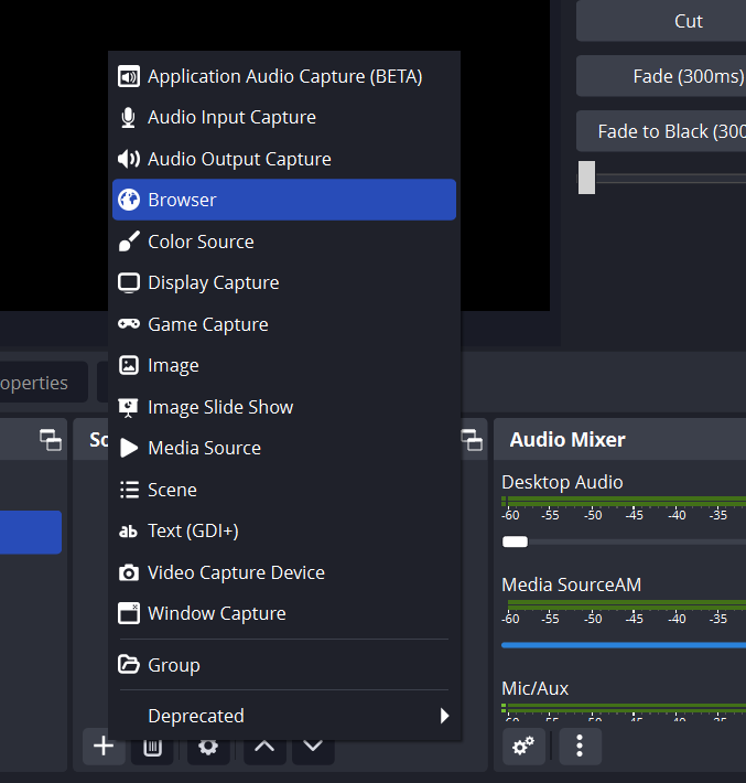 Добавьте новый источник типа "Браузер"