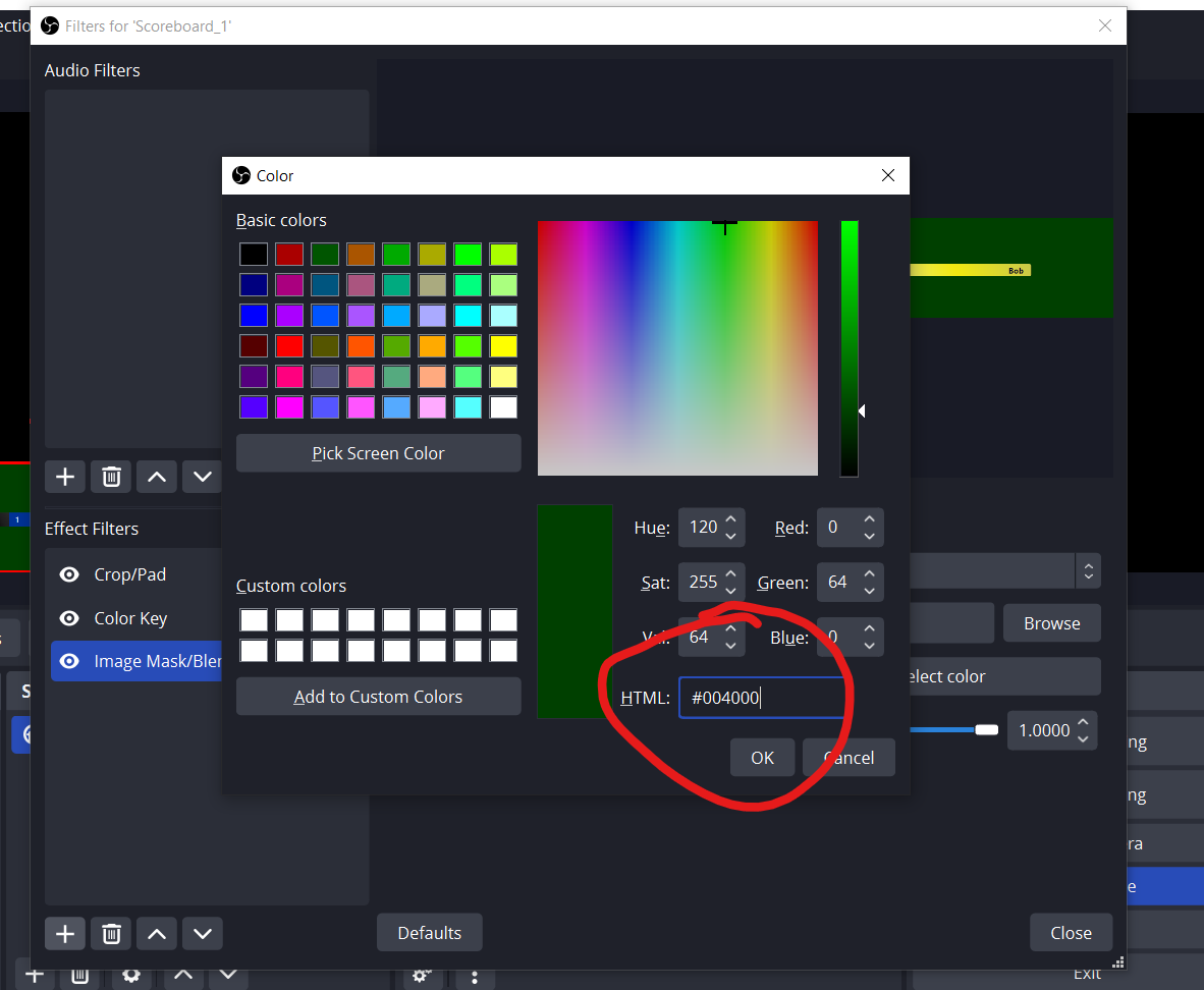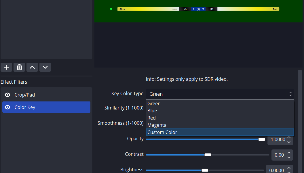 Добавьте еще один фильтр - Color Key и выберите ручную настройку цвета: